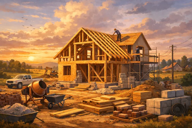 Крыша не только защищает дом от осадков, но и является важным элементом его теплового контура. Работы включают монтаж стропильной системы, укладку гидро- и пароизоляции, утепление и финишное покрытие (металлочерепица, мягкая кровля и прочее). Наружная отделка придает зданию законченный вид и обеспечивает дополнительную защиту стен от внешних воздействий.